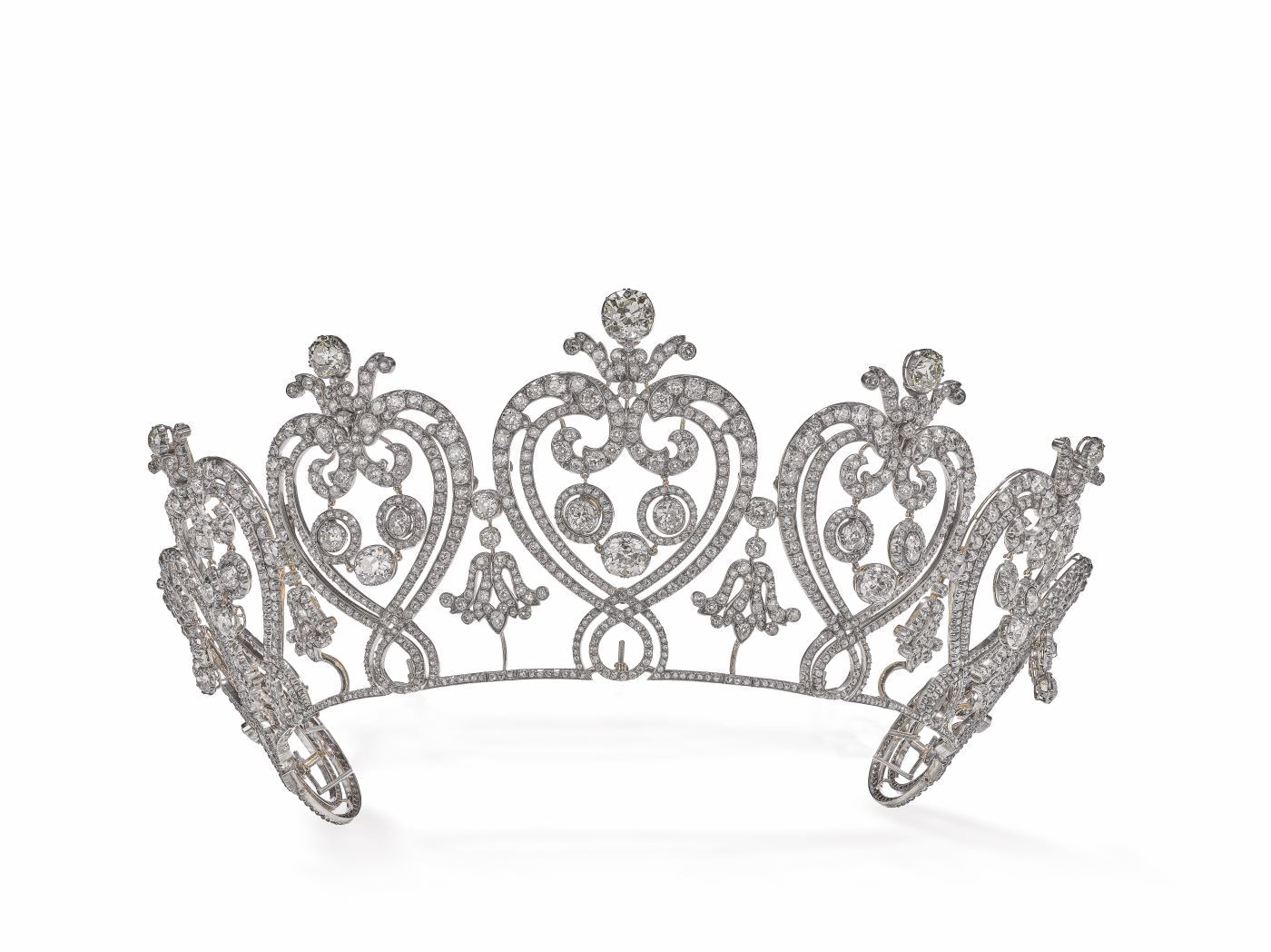 Tiara de Manchester, Harnichard para Cartier Paris, 1903. Encomenda para Consuelo, duquesa viúva de Manchester. Diamantes, ouro e prata; a voluta em C em cada extremidade cravejada de pasta de vidro. © Victoria and Albert Museum, Londres
